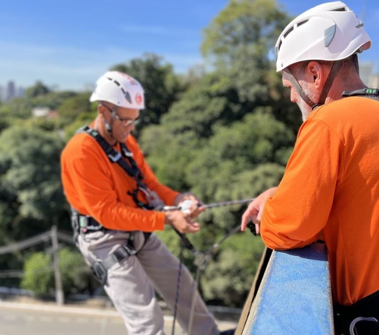 Nosso curso é realizado em AMBIENTE URBANO e não em galpão de treinamento. Dessa forma, o aprendizado se torna real, facilitando qualquer trabalho que envolva grandes alturas.